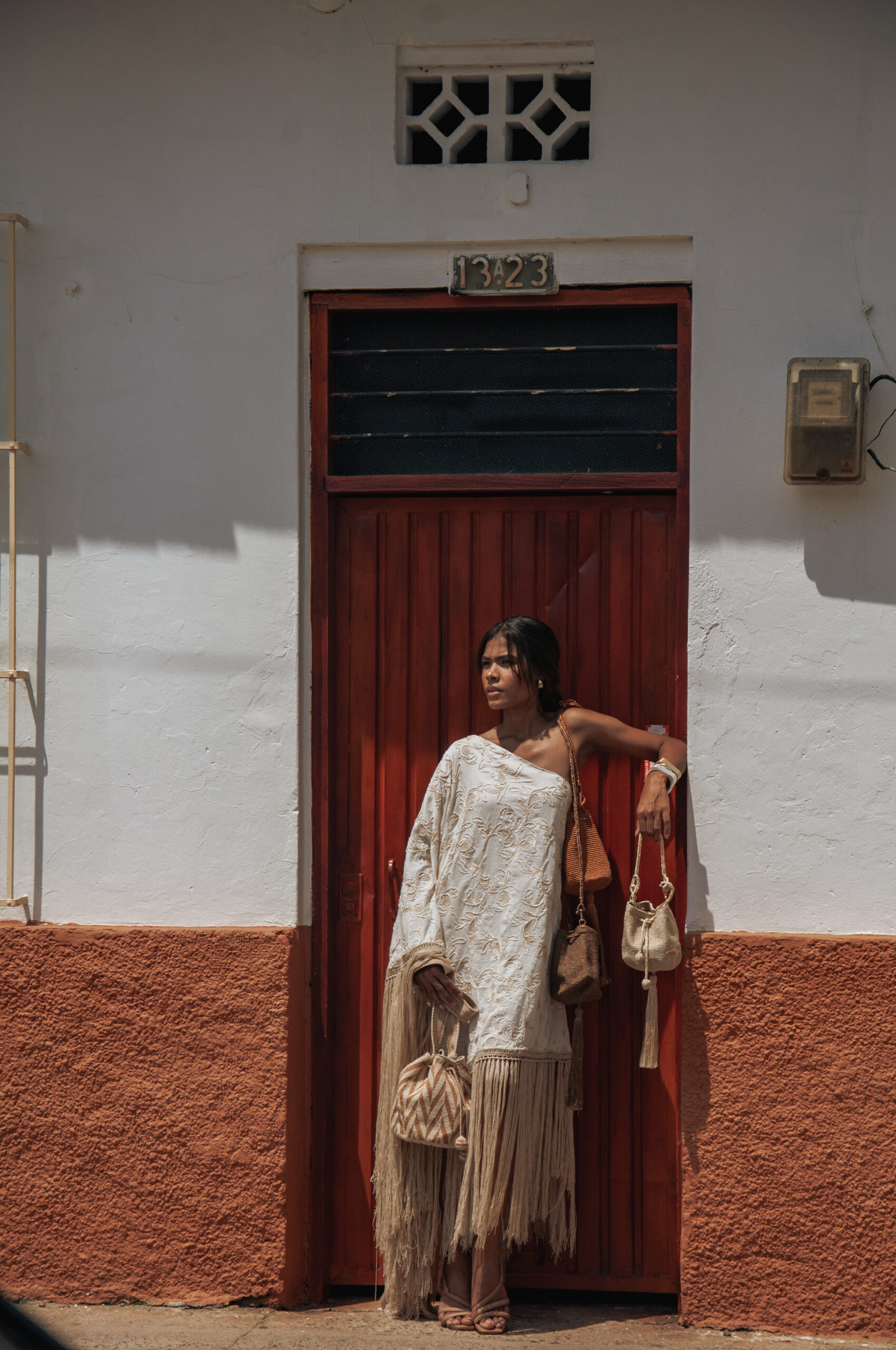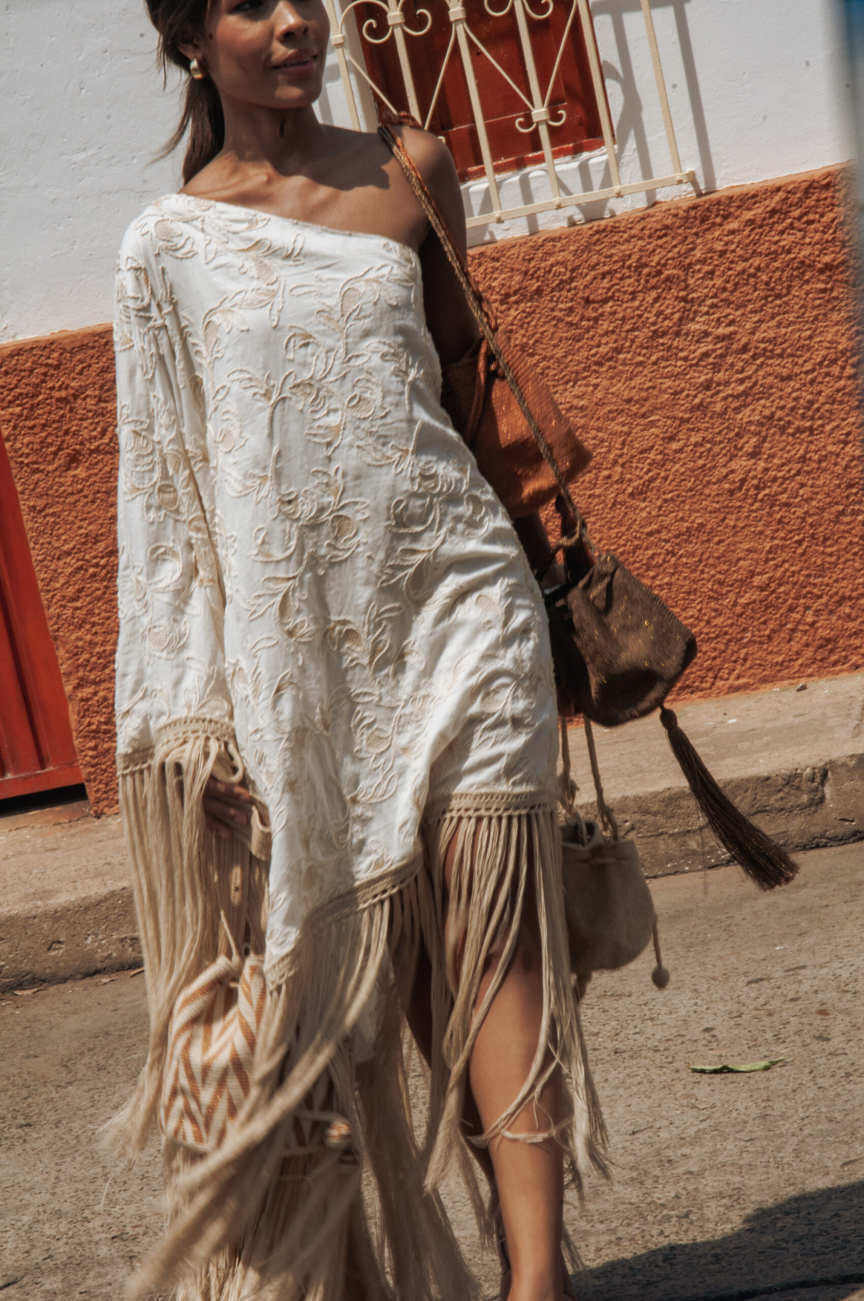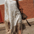 Manta con detalles bordados y flecos.